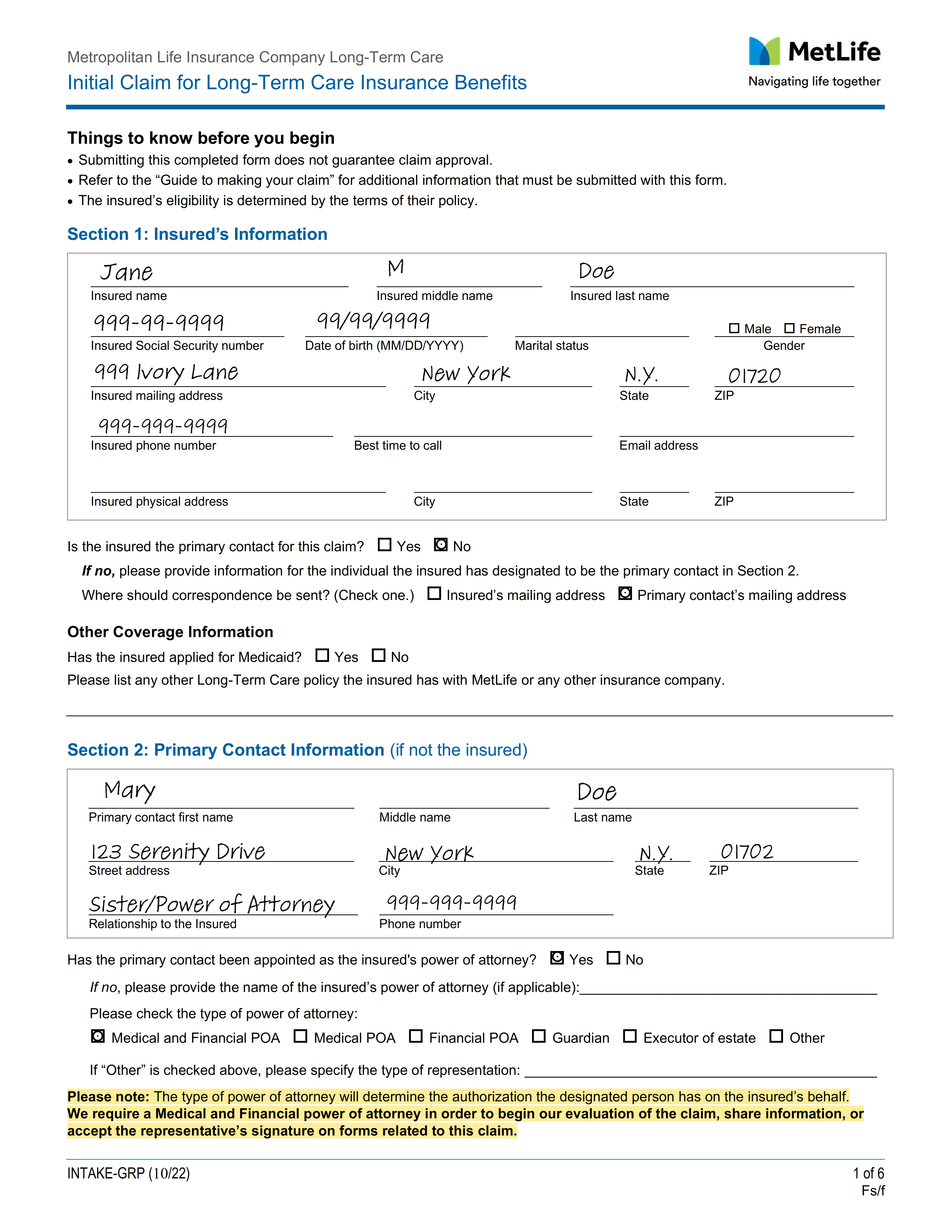 Email: LTCIntake@metlife.com**
